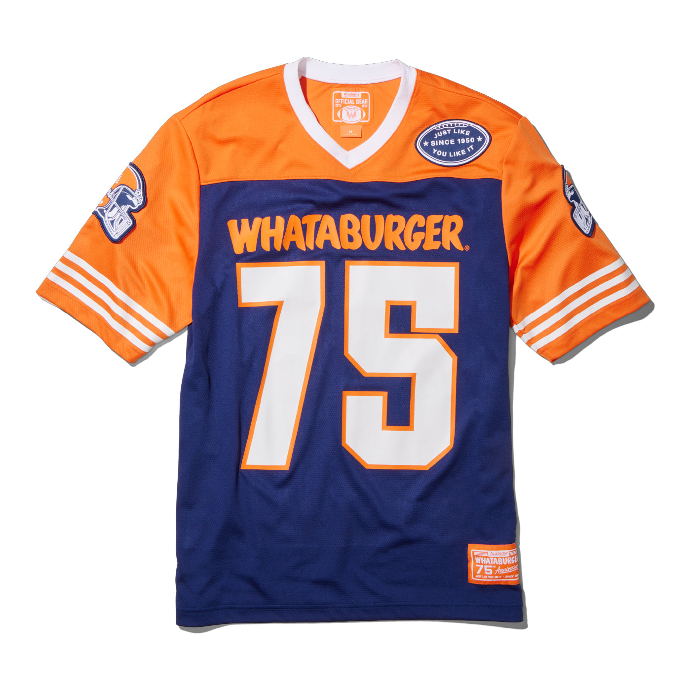 Look your best when you wear the Academy Sports + Outdoors x Whataburger Short Sleeve Football Jersey. It is made of 100% polyester. The moisture wicking technology wicks away sweat to keep you dry, and its UPF protectant blocks the sun’s harsh rays. The Flex technology allows for a wider range of movement.