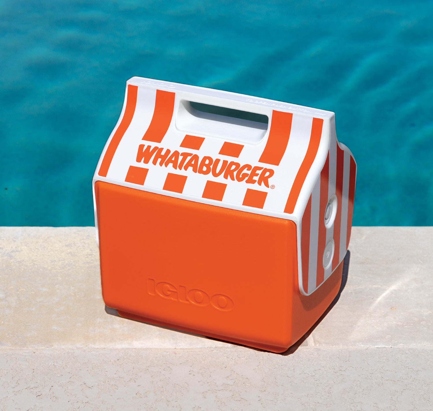 A line extension of a fan favorite, this is the smaller version of the Whataburger Igloo Cooler! Meet your new best friend. Thetalk of the tailgate, the keeper of cold drinks, your new picnic basket… We introduce to you the Whataburger Igloo LITTLE Playmate Cooler.
