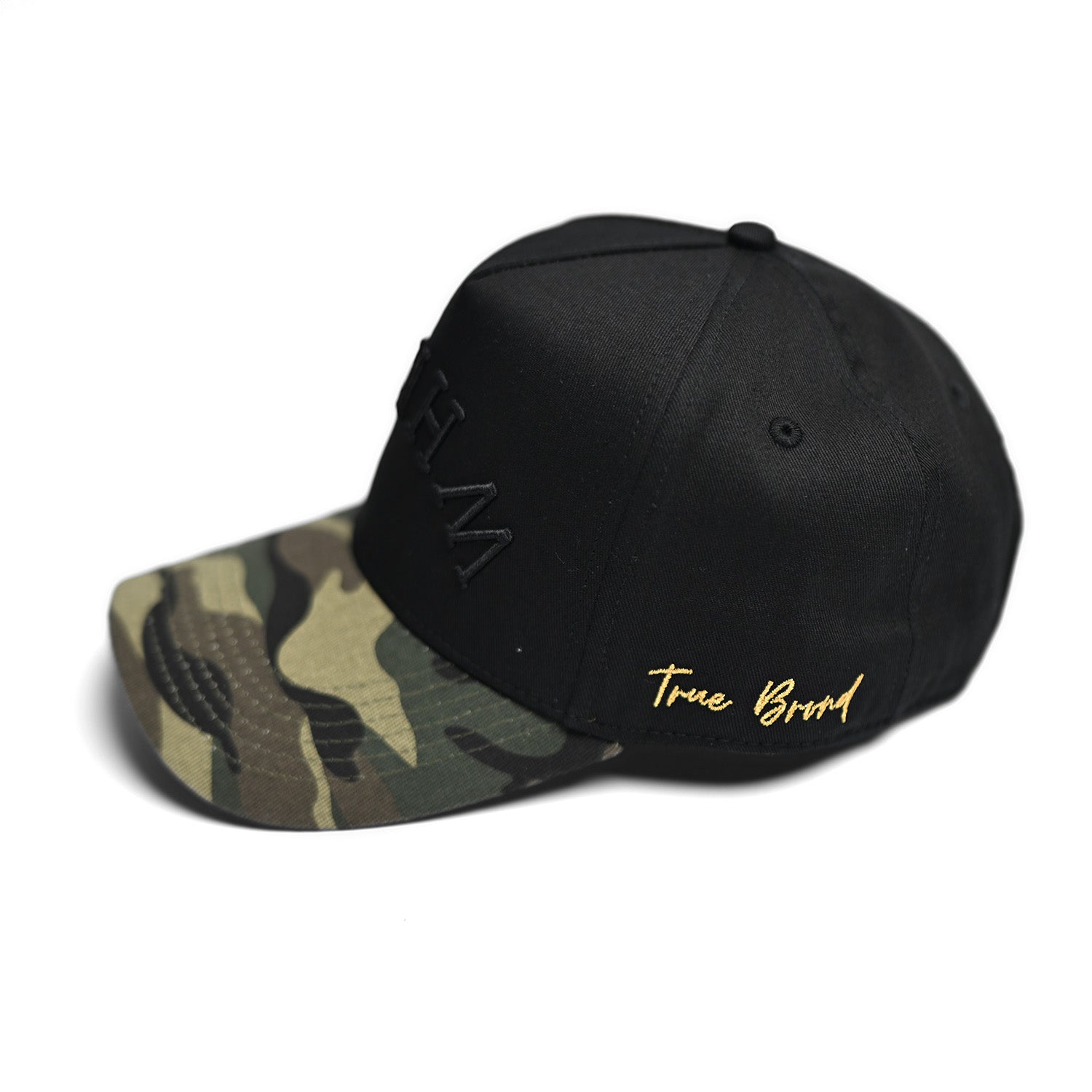 Get ready to turn heads with the True Brvnd® Black Camo Whataburger Hat! Made with 100% cotton, this structured snapback hat features an upside down tone-on-tone black WHATA design on a sleek black hat, paired with a stylish camo bill. Show off your love for Whataburger in a unique and trendy way.