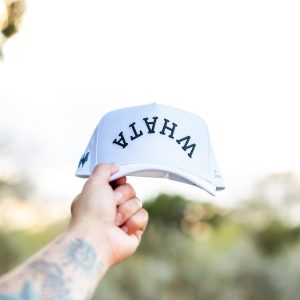 Get your hat game on point with the True Brvnd® White Whataburger Hat. Made from 100% cotton, this structured snapback hat boasts a bold, upside down black WHATA design and BURGER accents, perfect for catching attention and showing off your love for this iconic brand. Plus, there’s a surprise orange/white striped panel inside for even more fun!