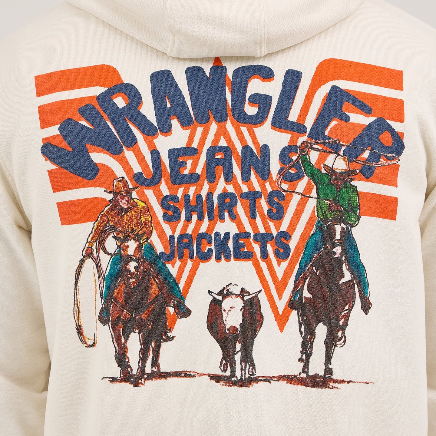 Cozy up the cowboy way with this limited-edition Wrangler® x Whataburger® Men’s Hoodie. Blending two of your favorite names in denim and food, you’ll be reaching for this hoodie on cooler nights spent under the rodeo lights or for late night bites at your favorite burger joint. It’s crafted from a comfortable cotton blend, complete with ribbed knit trim, a drawstring at the hood, and a kangaroo pocket. Plus, it comes with a mash-up of your favorite logos at the chest and a retro-inspired graphic of ropers riding ahead of the iconic “flying W” sign.