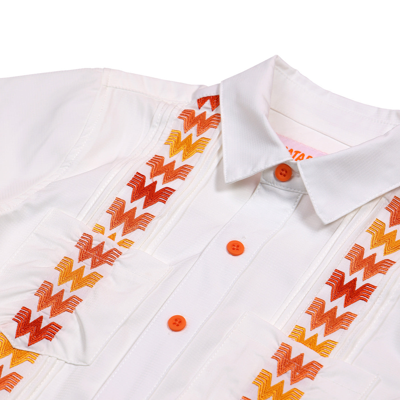 Introducing the Youth Guayabera – a playful spin on the classic button up shirt for kids. With a fun and unique design, this shirt is sure to make your little ones stand out. Get ready for some serious fun with this must-have addition to their wardrobe!